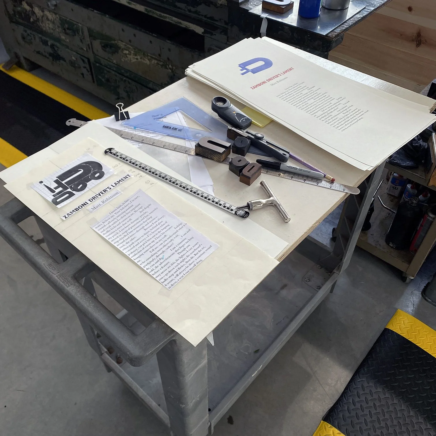 ¶ I just finished printing a poetry broadside for Halifax poet and friend Matt Robinson—the first letterpress commission I’ve done in the new shop. Matt and I have collaborated on projects like this almost annually for about two decades. Matt always gets favourable pricing (and sometimes more colours than he actually gets billed for) because he sends me a couple of poems to choose from and tells me ‘do what you want’. Sometimes we hire an illustrator, but more often we keep them typographic. Usually we make an edition of about fifty copies.